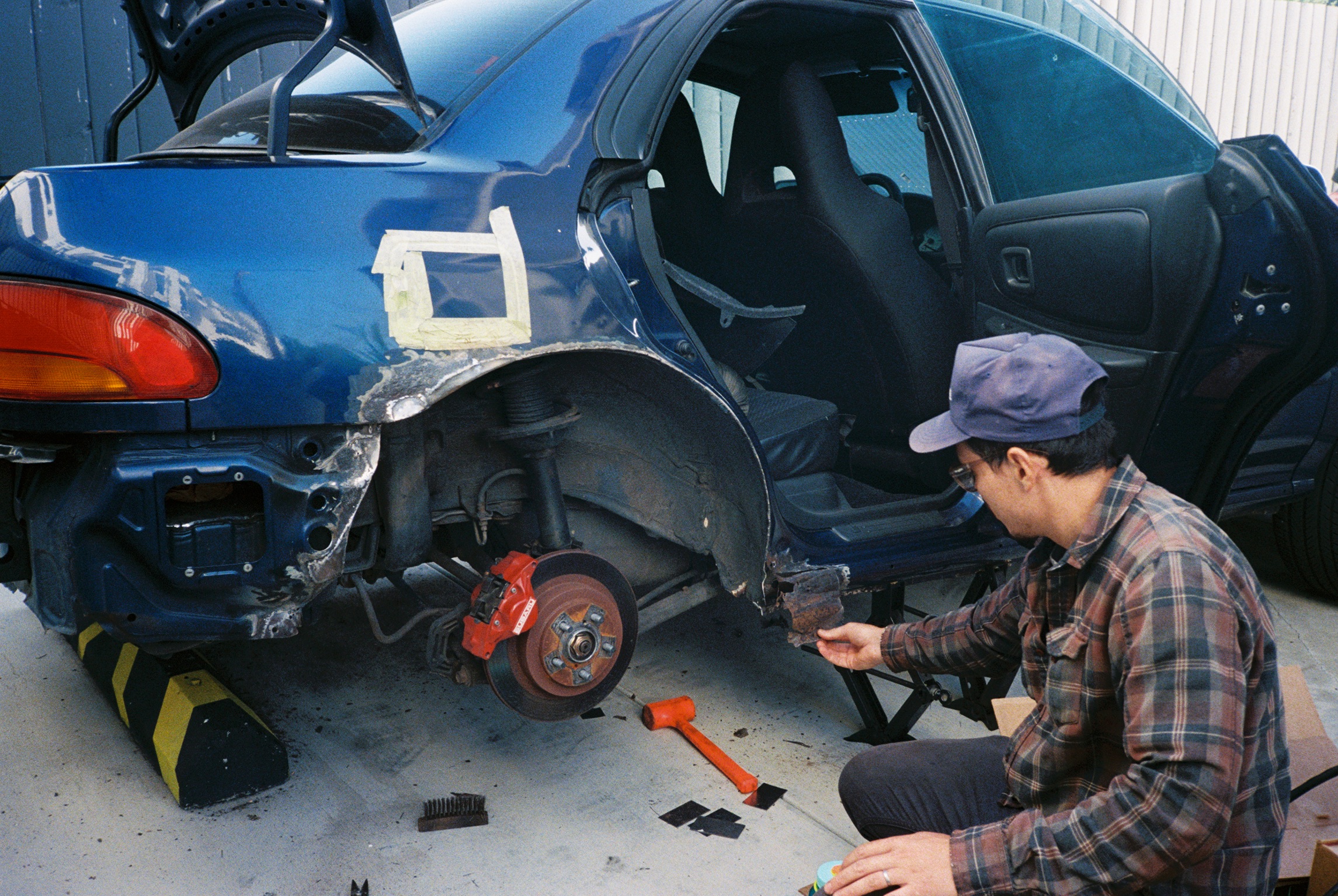 A 2001 N/A Impreza 2.5 RS being brought back to its former glory on a crappy, shoestring budget.